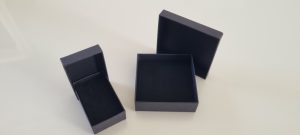 Boîte A Bijou Noire en carton. Intérieur mousse avec flocage de velours.