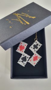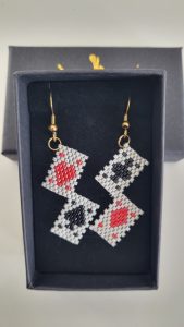 Inspirées des jeux de cartes, ces boucles d’oreilles originales jouent sur le contraste du noir, du rouge et du blanc. Le motif en losange rappelle les symboles d’un jeu de carte, pour une touche graphique et ludique.