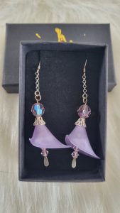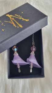 Ces boucles d’oreilles florales seront parfaites pour vos tenues estivales. Elles se composent de perles lucite en forme d’Arum de couleur Lilas.