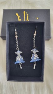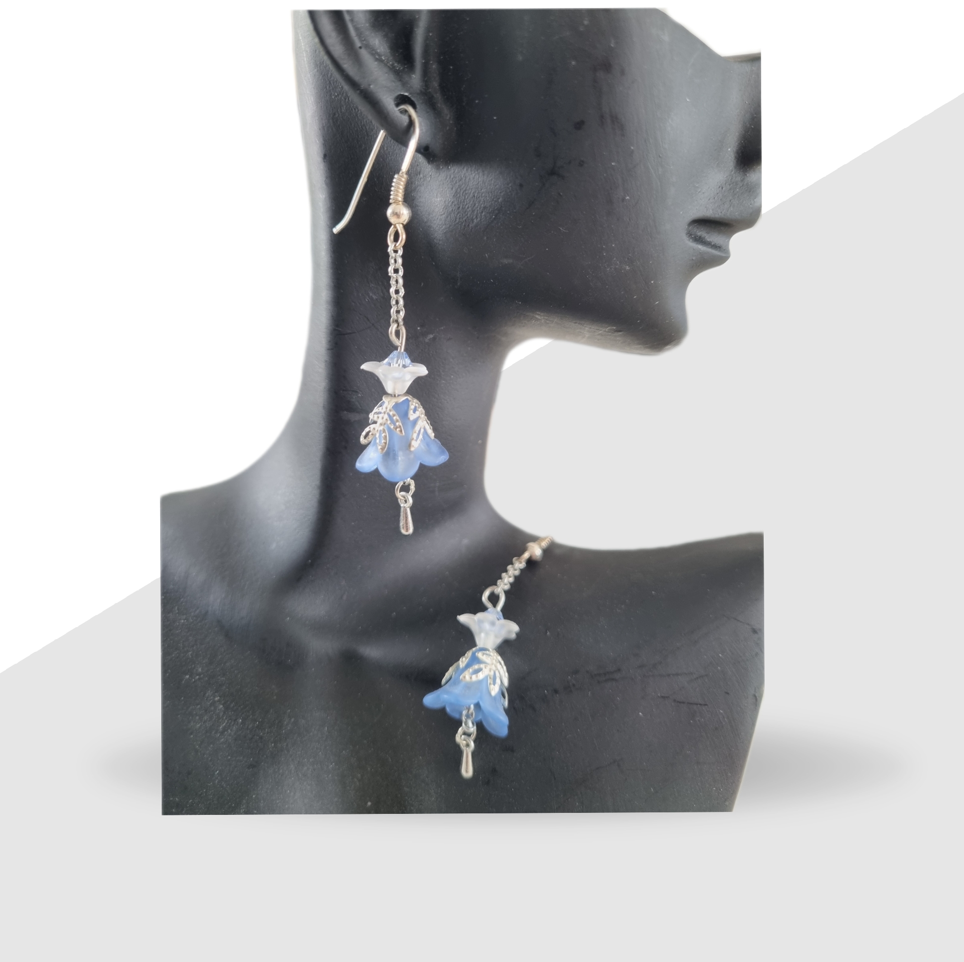 Boucles florales en lucite bleu et blanc. Ambiance fraîcheur estivale. Parfaites pour vos tenues légères et bohème.
