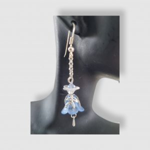 Ces boucles d’oreilles florales seront parfaites pour vos tenues estivales. Elles se composent de perles florales en lucite de couleur bleu clair et blanc.