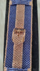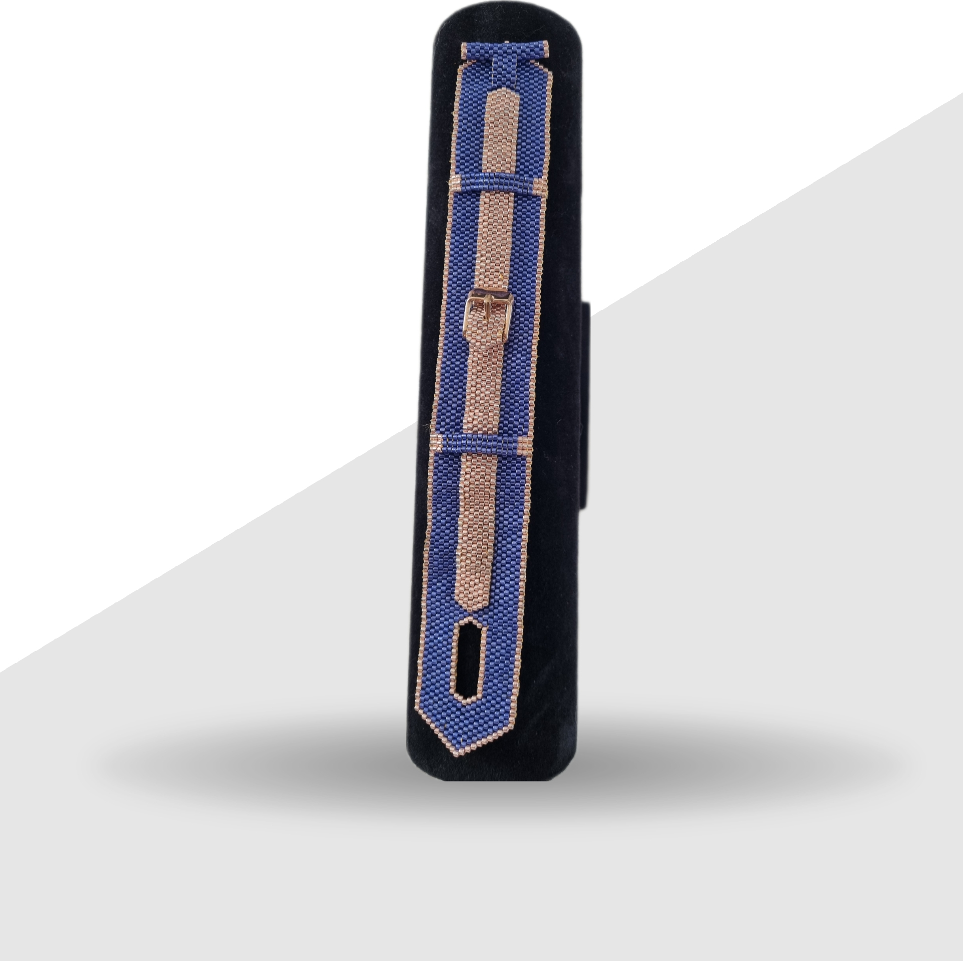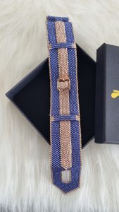 Un bracelet raffiné aux allures de ceinture miniature, mêlant les teintes doré rose et bleu jean. Sa petite boucle centrale apporte la touche finale d’élégance, pour un look casual chic tout en finesse.